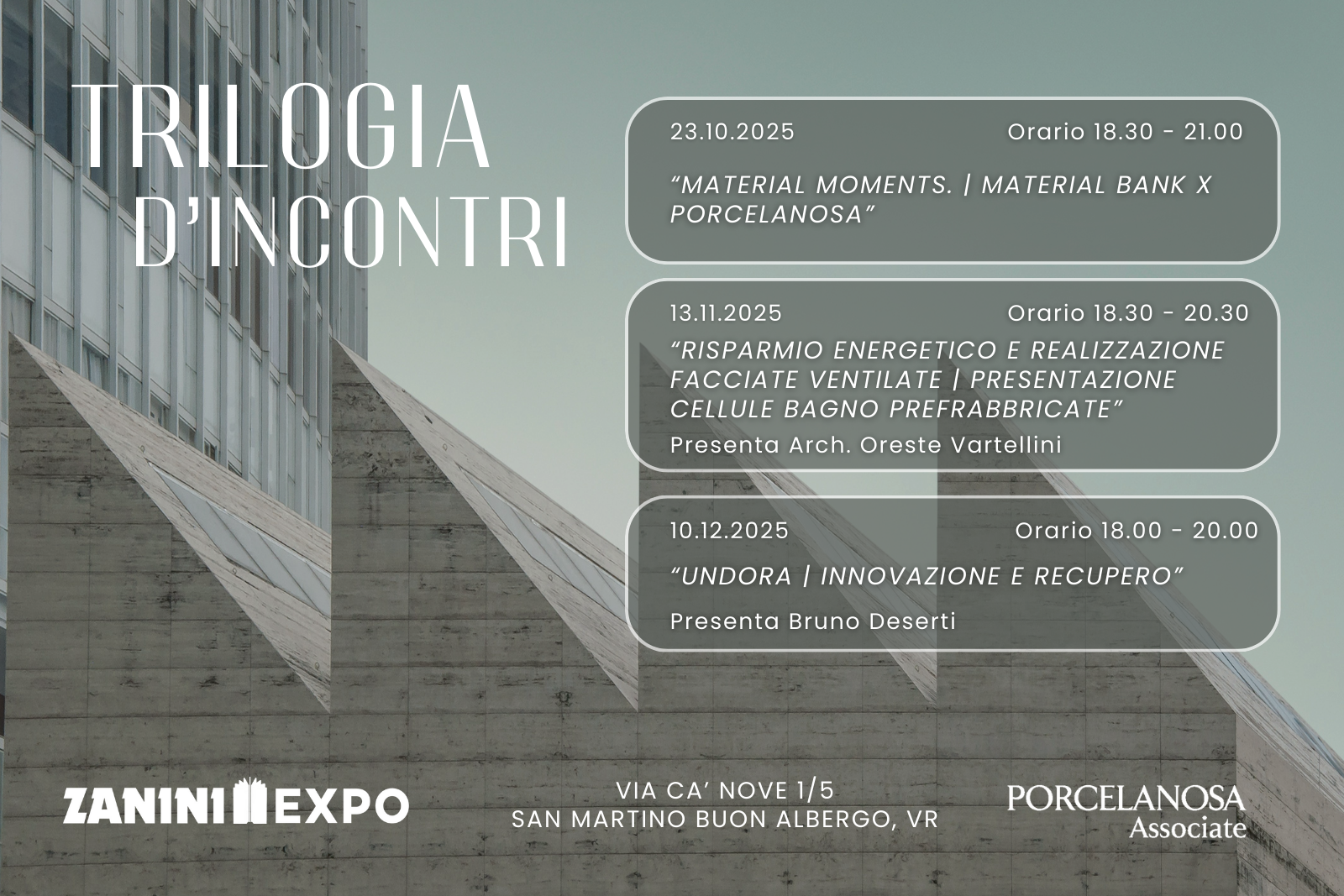 Zanini Expo, partner esclusivo di Porcelanosa Grupo, è lieto di presentare una serie di eventi e corsi di formazione dedicati ai professionisti del design e dell’architettura.